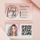 Parties scintillant d'or rose chic moderne scintille ombre sur blanc maquillage de cheveux photo logo qr code avec une typographie de script brossé ajouter votre photo d'affaires sur pastel blush rose. Ajoutez vos médias sociaux. Avec une police de script de signature élégante, toutes les couleurs sont modifiables, ajoutez votre logo.