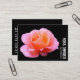 Modèle de carte de visite avec un texte vertical. Rose attrayant à l'avant. Nom de l'entreprise en texte tourné sur l'avant et l'arrière avec tous les autres coordonnées sur l'arrière. La photo ou l'image sur le devant peut également être changée. La conception permet également une personnalisation supplémentaire.