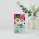 Élégantes roses fuchsia blanches et anémones bleu violet sur fond bleu sarcelle aqua. Cette conception classe et unique est destinée aux mariages, cartes de lieu, cartes de sauvegarde de date, cartes de remerciement, douches de mariée, anniversaires de 16 ans, fêtes, douches de fiançailles, ou presque tout événement que vous souhaitez !
