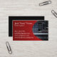 Une console de mixage sonore avec tous ses boutons et interrupteurs forment l'arrière - plan principal de cette image carte de visite. Votre nom et vos coordonnées apparaissent sur un arrière - plan rouge de demi-sphère à gauche. Ce carte de visite est particulièrement adapté aux ingénieurs du son, aux ingénieurs de l'enregistrement et aux DJs, mais il convient aussi à tous les acteurs de l'industrie musicale ou audio.