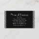 Un carte de visite maquilleur à la mode rouge et noir avec une paire de lèvres rouges brillantes contre un arrière - plan noir, encadré de rayures diagonales modernes noir et blanc. Personnalisez en ajoutant le nom de l'esthéticienne ou du cosmétologue certifié.