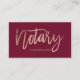 Un carte de visite élégant, moderne, élégant de logo de notaire avec la typographie élégante de style de lettrage de main de manuscrit dans la feuille d'or rose de faux sur un arrière - plan rouge personnalisable simple de marsala de Bourgogne. Si vous avez besoin de n'importe quelle personnalisation, n'hésitez pas en me contactant