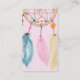 Un carte de visite moderne d'instructeur de yoga, un boho, un dreamcatcher peint à la main d'aquarelle avec des perles et des plumes dans le rose en pastel, turquoise, couleurs pour aquarelle oranges, la couleur d'arrière - plan de rose de rougissement est entièrement personnalisable