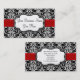 Carte De Visite Ruban rouge Chic noir/blanc damassé