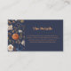Une élégante carte d'information de mariage bohème rustique avec une bordure florale bleu marine et terre cuite. Modifiez facilement l'URL pour refléter les détails de votre mariage et votre site Web mariage. Rust Blue French Pays Détails Boîtier Mariage Carte de visite.