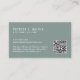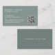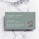 Carte de visite professionnel sage vert minimaliste et élégant avec votre nom, titre et coordonnées (tels que email, numéros de téléphone, nom et adresse postale) en lettres blanches propres, simples et modernes. Entrez l'adresse de votre site Web pour créer un code QR numérisable lié à votre site Web, profils de réseaux sociaux ou autre plate-forme qui présente votre travail, ce qui facilite l'exploration de votre expertise par d'autres. Au verso, personnalisez le texte supplémentaire ou laissez vide.