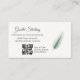 Un design carte de visite doux et professionnel avec une plume verte sauge gracieuse et un code QR pour un accès mobile rapide aux services. Idéal pour les notaires qui veulent projeter la confiance calme, la fiabilité et l'accessibilité à chaque interaction.