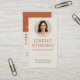 Une carte de visite moderne et élégante avec une base en terre cuite chaleureuse et des accents verts calmes. L'espace réservé pour photo personnalisable garantit une reconnaissance instantanée, tandis que le code QR intégré rend le réseau transparent. Parfait pour les professionnels créatifs, les consultants et les entrepreneurs qui veulent un équilibre unique de tons de terre et de design contemporain.
