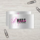modèle de carte de visite d'art à ongles acrylique. base de faux feuillard en platine argenté avec contour de main métallique à finition chaude. l'avant dispose d'un remplissage à ongles arc-en-ciel irisé opal, et l'arrière dispose d'un remplissage à parties scintillant rose chaud.