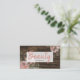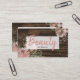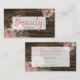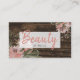 Un élégant coiffeur rustique en bois foncé et un salon de beauté carte de visite avec une belle pêche à la floraison. Personnalisez en ajoutant le nom de l'esthéticienne ou maquilleur certifié.