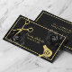 Salon de cheveux Ciseau or & Sèche-cheveux Black Floral Gold Cartes de visite encadrés.