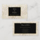 Un salon de coiffure à la parties scintillant en or blanc et tendance carte de visite avec un cadre élégant noir et or.