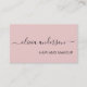 Blush rose et noir Simple moderne minimaliste Carte de visite de maquillage de cheveux avec une typographie de script élégante et moderne.