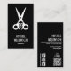 Carte de visite noir élégant pour coiffeurs et barbiers avec votre nom sur le devant et plus de détails sur le dos avec vos informations sur les médias sociaux, adresse, numéro de téléphone et un code QR. Personnalisez ces cartes pour être les vôtres.