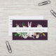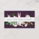 Fleurs violettes en ivoire blanc et prune foncé modernes avec feuillage vert luxuriant orné de ciseaux de salon blanc, design de logo, cartes de rendez-vous. La couleur du texte et le style de police peuvent être customisés. Modèle de design professionnel avec plusieurs lignes pour vos informations. La carte comporte des lignes pour les informations de rendez-vous., y compris le nom, le jour de la semaine, la date et l'heure.