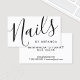 Carte de visite moderne moderne Black and White Nail Salon avec le mot "clous" dans le style de police de calligraphie moderne sur le côté avant et les détails dans le style de police sans serif moderne sur le côté arrière. Parfait pour salon de ongles, salon de beauté et de nombreuses autres professions.