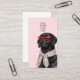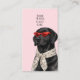 Sassy Walks Classy Care Pet Services Business Card features a soft, on-trend blush pink background. The front design showcases a stylish black Labrador wearing a white scarf with subtle gray polka dots and bold red sunglasses, creating a playful yet professional editorial look.