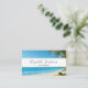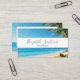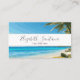 Apportez une ambiance tropicale rafraîchissante à votre image professionnelle avec ce design carte de visite de scène de plage. Ciel bleu, sable blanc, eau bleu cristalline et palmiers luxuriants, l'avant est recouvert d'une bande blanche propre pour votre nom et titre personnalisable. Le dos présente le même paysage serein avec un carré blanc pour vos coordonnées : numéro de téléphone, email, adresse et site web. Parfait pour les professionnels qui veulent un design calme, relaxant et accueillant.