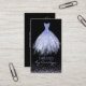 Carte de visite d'ouvrière couturière de robe élégante, avec des graphiques d'une robe bleue de parties scintillantes de bigorneau, sur un fond noir, avec des parties scintillantes de lavande regardant des accents. Personnalisez le texte pour adapter à vos besoins d'affaires. Un beau tient la carte pour vos affaires de mise sur pied.