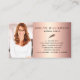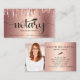 Présentez-vous le mieux possible à vos clients. La typographie manuscrite noire et fantaisie avec stylo plume et gouttes de parties scintillant rose or recouvre un arrière - plan faux métallique à l'ombre de cuivre. Sur le dos, votre photo personnalisée sur le côté gauche et la typographie sans serif moderne superposant un faux arrière - plan métallique à l'ombre sur la droite. Personnalisez-vous avec votre nom complet et vos informations commerciales sur le devant. Remplissez à l'arrière la photo de votre choix et vos numéros de téléphone, adresse, courriel, site Web et autres informations. Faites une déclaration chic, professionnelle et élégante où que vous alliez. Ajoutez simplement votre photo, tapez votre nom, votre nom d'entreprise et toutes vos informations supplémentaires dans la section "Personnalisez ce Modèle", et vous pouvez facilement personnaliser ce carte de visite. S'il vous plaît, envoyez-moi un message avec toute question ou demande.