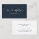 Un design carte de visite simple et élégant présente votre nom ou votre nom d'entreprise dans une typographie moderne en écriture blanche sur un arrière - plan bleu marine immaculé. Ajoutez une ligne de texte supplémentaire sous la forme d'un bloc de lettres propre et moderne pour votre occupation ou titre. Personnalisez l'envers avec vos coordonnées. Un choix chic et professionnel dans la marine classique et blanc pour toute occupation.
