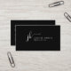 Design de monogramme de script moderne chic minimaliste sur un arrière - plan noir modifiable couleur, personnalisez votre propre nom et titre de travail, et informations d'affaires sur le dos, simple et élégant, grand carte de visite de luxe professionnel.