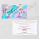 dites grand merci et montrez votre amour et l'appréciation de vos clients avec cette carte script moderne avec le coeur et l'arrière - plan holographique, les invitant à acheter à nouveau, laisser un commentaire et vous étiqueter sur les médias sociaux. Vous pouvez modifier les couleurs du coeur, du texte et des icônes pour adapter votre marque