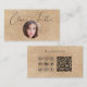 Ce design simple et professionnel comprend une élégante typographie de script, une photo ronde (remplacez-la par une photo carré pour obtenir de meilleurs résultats), de nombreuses icônes de médias sociaux et un code QR à personnaliser avec votre site Web, blog, ou tout lien. Les icônes des médias sociaux peuvent être déplacées ou supprimées à l'aide de l'outil de conception.