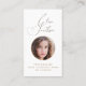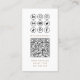 Ce design blanc simple et professionnel comprend une élégante typographie de script, une photo ronde (remplacez-la par une photo carré pour obtenir de meilleurs résultats), de nombreuses icônes de médias sociaux et un code QR à personnaliser avec votre site Web ou blog. Les icônes des médias sociaux peuvent être déplacées ou supprimées à l'aide de l'outil de conception.
