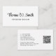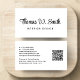 Carte de visite professionnel moderne avec votre nom dans un script élégant en gras et votre titre et vos coordonnées (tels que email, numéros de téléphone, nom et adresse postale) dans une typographie simple et propre. Ajoutez l'adresse URL de votre site Web pour créer un code QR numérisable connecté à votre site Web, votre portefeuille, votre profil de médias sociaux ou toute autre plate-forme qui présente votre travail, ce qui facilite l'exploration de votre expertise par les clients et les clients.
