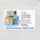 Carte de visite du secrétaire noir. Services de secrétariat avec un Carte de visite d'illustration Black Girl en couleur sur un arrière - plan blanc. Personnalisez avec les détails de votre entreprise. Offrez des services d'affaires à partir de la maison de votre bureau. Coordonnées pour distribuer ou distribuer à d'autres personnes.