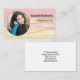 Cette aquarelle colorée design carte de visite dispose d'un espace réservé photo avec le nom du modèle et l'occupation à l'avant. Le verso comprend un champ de texte modèle pour le nom commercial et les détails. Remplacez l'espace réservé photo par votre photo. Remplissez les champs de personnalisation, supprimez tout texte ou modifiez à l'aide de l'outil de conception pour sélectionner un style, une taille et une couleur de police que vous souhaitez. La photo de l'espace réservé est gracieusement fournie par pexels.com.