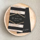 Un design cool et élégant avec typographie unique sur emblème de diamant bordé de feuille d'argent FAUX fusionne vintage avec moderne. Bandes de paillettes horizontales noires et brillantes.