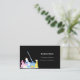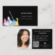 Une carte de visite élégante et glamour sur un arrière - plan noir décoré de matériel de nettoyage. Personnalisez et ajoutez votre photo, nom, informations de contact textuel et votre propre code QR à votre adresse de site Web.