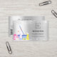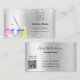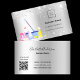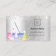 Un carte de visite élégant et glamour sur un arrière - plan faux argenté décoré avec de la poussière de parties scintillant sur l'avant et l'équipement de nettoyage. Personnalisez et ajoutez le logo, le nom, les coordonnées textuelles et votre propre code QR à votre adresse Web.