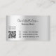 Un carte de visite élégant et glamour sur un arrière - plan faux argenté décoré avec de la poussière de parties scintillant sur l'avant et l'équipement de nettoyage. Personnalisez et ajoutez votre nom, vos coordonnées textuelles et votre propre code QR à votre adresse Web.
