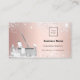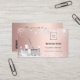 Un carte de visite élégant et glamour sur un arrière - plan blush et rose d'or faux métallique décoré avec de la poussière de parties scintillant fausse argent sur l'avant et l'équipement de nettoyage. Personnalisez et ajoutez le logo, le nom, les coordonnées textuelles et votre propre code QR à votre adresse Web.