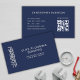 Un carte de visite minimal qui convient à un entrepreneur en plomberie ou en plomberie qui travaille dans des locaux résidentiels ou commerciaux. Le design moderne et élégant comprend un logo de tuyau d'eau gris et blanc sur le devant avec un arrière - plan de marine et espace pour votre nom d'entreprise et slogan. Au verso, votre nom, vos coordonnées et un code QR. Les clients pourront facilement accéder à votre site Web pour consulter vos services et disponibilité pour prendre rendez-vous.