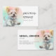 Ce carte de visite captivant présente un joyeux chiot avec un arrière - plan pastel coloré aquarelle, créant un design amical et accessible. Parfait pour la promotion de vos services de toilettage, il allie charme et professionnalisme pour donner une impression durable aux clients. Une façon délicieuse de mettre en valeur votre dévouement aux soins des animaux de compagnie!