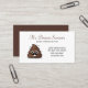 Ce Carte de visite d'enlèvement de déchets d'animaux de compagnie Pooper Scooper présente un design propre et professionnel adapté aux services de gestion des déchets d'animaux de compagnie. La mise en page est visuellement attrayante, avec une illustration d'un spécialiste joyeux de l'enlèvement des déchets équipé d'un bon scooper et d'une poubelle, renforçant la fiabilité et l'efficacité de vos services. La typographie audacieuse assure une lisibilité aisée, tandis que les tons doux et les graphismes amicaux créent un look accueillant et digne de confiance. Conçu pour les entreprises d'enlèvement des déchets d'animaux domestiques, les services de nettoyage des caca à chien et les professionnels de l'assainissement écologique des animaux domestiques, ce carte de visite saisit l'essence de la propreté et de la responsabilité. L'émoticône amusante et la disposition moderne du poop mettent en valeur l'image de marque, ce qui le rend parfait pour les parcs pour chiens, les bureaux de vétérinaire et les magasins d'alimentation pour animaux de compagnie. Que vous offriez des services résidentiels de déchets d'animaux domestiques, des solutions de nettoyage commercial ou de maintenance régulière de la cour, cette carte met en valeur l'humour et le professionnalisme pour garder les espaces frais et hygiéniques.