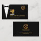 Un tux noir créatif simple avec une cravate d'arc se reposent au mur gauche. Sa poche de poitrine sont remplies de l'or de faux mangeant des ustensiles. Directement au-dessous du mensonge de poche votre raison sociale prestigieuse. Près de la base de la carte vous avez l'URL d'affaires. Au nord au bon coin, vous avez un logo d'or de faux d'un chef, que vous pouvez employer.