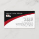 Cartes de visite de service de livraison de coursier médical dans un design moderne et élégant avec l'image d'un fourgon de livraison avec symbole médical, éléments de design géométrique moderne et une mise en page simple conçue pour être personnalisée en ligne. Créé pour les services de livraison, de coursier ou d'urgence de l'industrie médicale.