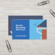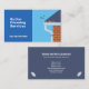 Deux tons bleus cartes de visite avec l'illustration d'un toit et la goutte d'une maison et quelques feuilles d'automne. Il pourrait être utilisé pour les petites entreprises comme le nettoyage ou la réparation des toits et des gouttières, le bricoleur, le service de lavage sous pression, etc.