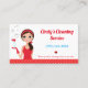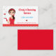Carte de visite des services de nettoyage de maison de femme de chambre de dessin mignonne.