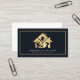 Le carte de visite de services de nettoyage moderne dispose d'équipement de nettoyage à l'intérieur de la maison dorée icône, nom et titre sur le devant sur un arrière - plan sombre. Parfait pour les services de nettoyage domestique et industriel.