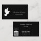 Un arrière - plan noir, décoré d'une colombe blanche. Personnalisez et ajoutez le nom de votre entreprise et un texte à l'avant. Lettres blanches Retour : Modèles pour Votre nom, titre, numéro de téléphone, adresse postale et site Web. Ajoutez votre propre code QR à votre site web.