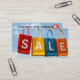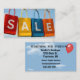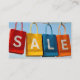 Colorful paper shopping bags hang on an outdoor clothesline against a summer sky, with the word "Sale" prominently displayed.