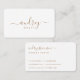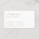 signature chic typographie carte de visite blanc et or avec une touche classe féminine avec votre nom général dans une police de calligraphie fantaisie et votre profession contenue dans elle devant, votre nom complet dans calligraphie côté fantaisie police, carrière, et tous les détails dans le côté gauche du dos.