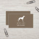 Modèle de carte d'affaires Greyhound Silhouette. Idéal pour les gardiens de chiens, les gardiens de chiens, les marcheurs de chiens, les garderies de chiens, les toiletteurs, les vétérinaires, et pratiquement tout professionnel d'affaires qui est un fan de Greyhounds. Un modèle facile à remplir avec vos coordonnées et votre adresse. Les couleurs et les polices sont entièrement personnalisables. Disponible dans une variété de choix de papier. Choisissez également entre les angles standard ou les angles arrondis modernes. Avec ces cartes de visite cool, vous êtes sûr de laisser une impression positive !