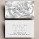 This elegant modern business card features an image of white silk, framed on the top and bottom by gray and white watercolor agate borders trimmed with sparkly silver faux glitter. Personalize it with your name in off-black handwriting-style script and your business information in sans serif font. The reverse is a coordinating shade of solid pale gray. Ideal for hair stylists, makeup artists and aestheticians